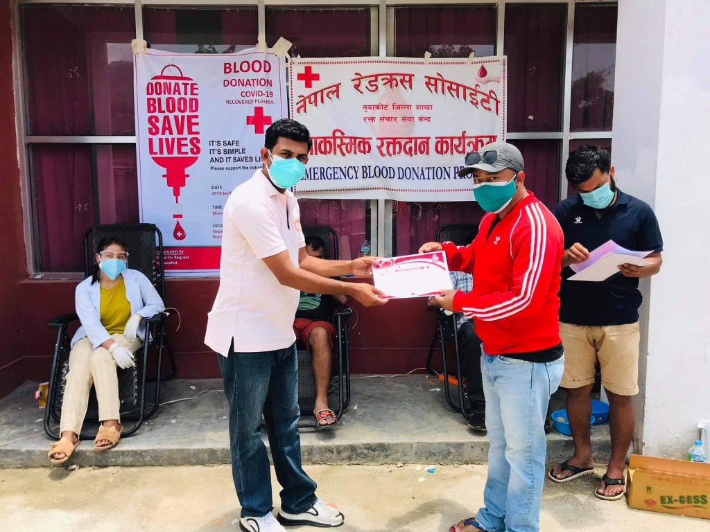 ब्लड अन रिक्वेस्ट इन नुवाकोटले गत साता पनि प्लाज्मा र रक्तदान गरि संकलित रगत नेपाल रेडक्रस सोसाइटी रक्त सञ्चार केन्द्र भक्तपुर पठाएको थियो ।