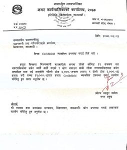 आइतबार नागार्जुन नगरपालिकाका प्रमुख मोहन बहादुर बस्नेत, वडा नं ६ का अध्यक्ष राजेन्द्र बुढाथोकी, प्रशासन तथा योजना उपशाखा प्रमुख नारायण प्रसाद तिमिल्सिना सहितको टोलिले प्रधानमन्त्री के पि शर्मा समक्ष नगरबासीहरुलाई कोभिड- १९ को खोपको व्यवस्था मिलाउन आग्रह गरेको हो ।