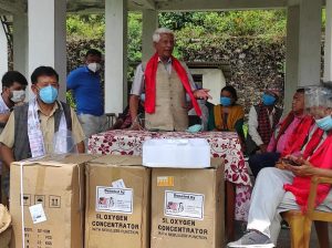 त्यस्तै आज ट्रष्टले तारकेश्वर गाउँपालिका र किस्पाङ गाउँपालिकामा पनि ३/३ थान अक्सिजन कन्सनट्रेटर, माक्स र स्यानीटाइजर लगायत विभिन्न स्वास्थ्य सामग्री वितरण गरिएको केसीले जानकारी दिए ।