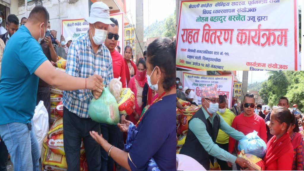 मेलम्चीमा काङ्ग्रेस नेता मोहन बहादुर बस्नेतले गरे१४०घर परिवारलाई राहत वितरण