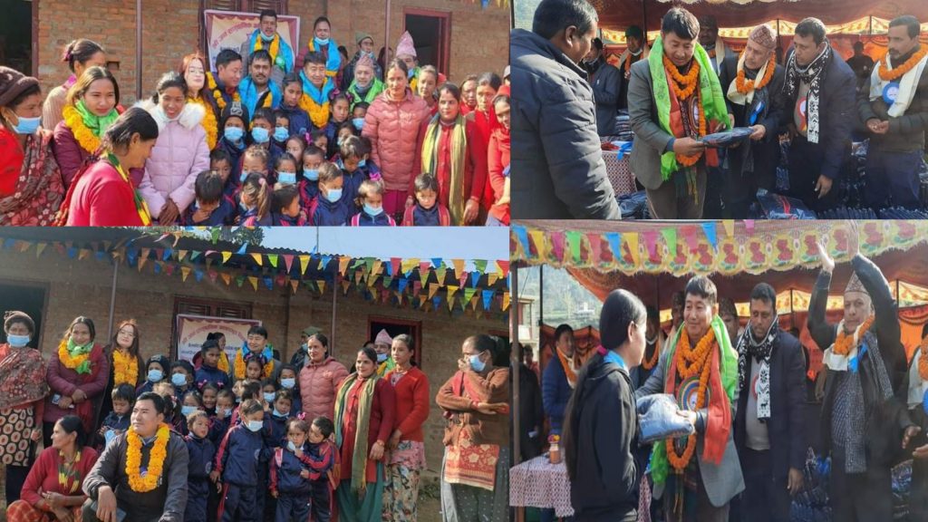 काठमाडौ । नेपाली कांग्रेसका केन्द्रीय सदस्य एवम् संघीय सांसद बहादुरसिंह लामा तामाङले बेलकोटगढी नगरपालिका वडा नम्बर ७ मा रहेको २ वटा सामुदायिक विद्यालयहरुमा अध्यन्रत विद्यार्थीहरुलाई न्यानो कपडा बितरण गर्नुभएको छ ।