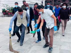 काठमाडौ । काठमाडौंको हनुमानढोका दरबार स्क्वायर क्षेत्रबाट पर्यटकीय स्थलमा विशेष सरसफाई अभियान सुरु गरिएको छ । पर्यटन मन्त्री जिवनराम श्रेष्ठले आज एक कार्यक्रमका बिच सो अभियान संचालन गरेका हुन।सो अभियान अन्तर्गत आज हनुमानढोका दरबार क्षेत्र, वसन्तपुर र त्यस आसपासमा सरसफाइ गरिएको हो।