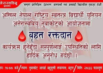 अरु खवर नेपालमा कांग्रेस रहँदासम्म संविधानभन्दा माथि कोहीपनि बस्न पाउँदैन तारकेश्वर अनलाईन डेस्क ३ फाल्गुन २०७७, सोमबार बालमैत्री नगर बन्दै धुलिखेल नगरपालिका तारकेश्वर अनलाईन डेस्क ३ फाल्गुन २०७७, सोमबार अनेरास्ववियु नुवाकोटको आयोजनामा नुवाकोटमा वृहत रक्तदान कार्यक्रम आयोजना हुने तारकेश्वर अनलाईन डेस्क ३ फाल्गुन २०७७, सोमबार आज मिति २०७७ साल फागुन ३ गते राशिफल तारकेश्वर अनलाईन डेस्क ३ फाल्गुन २०७७, सोमबार भेटुवाल विवकेशील साझा पार्टीको सञ्चार विभाग सदस्यमा मनोनित तारकेश्वर अनलाईन डेस्क २ फाल्गुन २०७७, आईतवार नुवाकाेट वाट यु-१३ उमेर समुहका ९ खेलाडि छनाैट,फुटवलमा भविष्य खाेज्दै तारकेश्वर अनलाईन डेस्क २ फाल्गुन २०७७, आईतवार शिवपुरीको चापाबोटमा तामाङ सास्कृतिक तथा सङ्ग्रहलय भवनको शिलान्यास तारकेश्वर अनलाईन डेस्क २ फाल्गुन २०७७, आईतवार तारकेश्वर नगरपालिका वडा नं १० मा जेष्ठ नागरिकहरुलाई न्यानो कपडा वितरण तथा निशुल्क आँखा शिविर सञ्चालन तारकेश्वर अनलाईन डेस्क २ फाल्गुन २०७७, आईतवार मिति २०७७ साल फागुन २ गते राशिफल तारकेश्वर अनलाईन डेस्क २ फाल्गुन २०७७, आईतवार मिति २०७७ साल फागुन १ गतेको आजको राशिफल तारकेश्वर अनलाईन डेस्क १ फाल्गुन २०७७, शनिबार